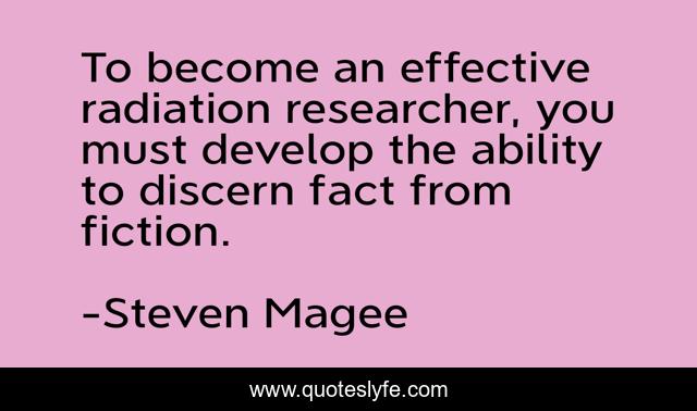 This page presents the quote "To become an effective radiation researcher, you must develop the ability to discern fact from fiction.". Author of this quote is Steven Magee. This quote is about from, ability, effective, researcher, radiation, fiction, become, develop, research,.