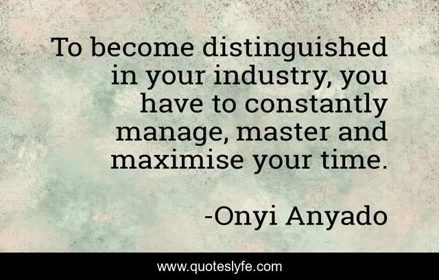 This page presents the quote "To become distinguished in your industry, you have to constantly manage, master and maximise your time.". Author of this quote is Onyi Anyado. This quote is about time-management, business, entrepreneurship, entrepreneur, distinction, thought-leader,.