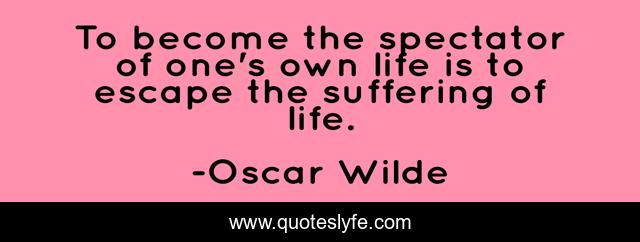 This page presents the quote "To become the spectator of one's own life is to escape the suffering of life.". Author of this quote is Oscar Wilde. .