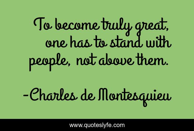 This page presents the quote "To become truly great, one has to stand with people, not above them.". Author of this quote is Charles de Montesquieu. This quote is about become, stand, people,.
