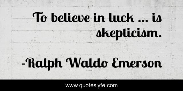 This page presents the quote "To believe in luck ... is skepticism.". Author of this quote is Ralph Waldo Emerson. .