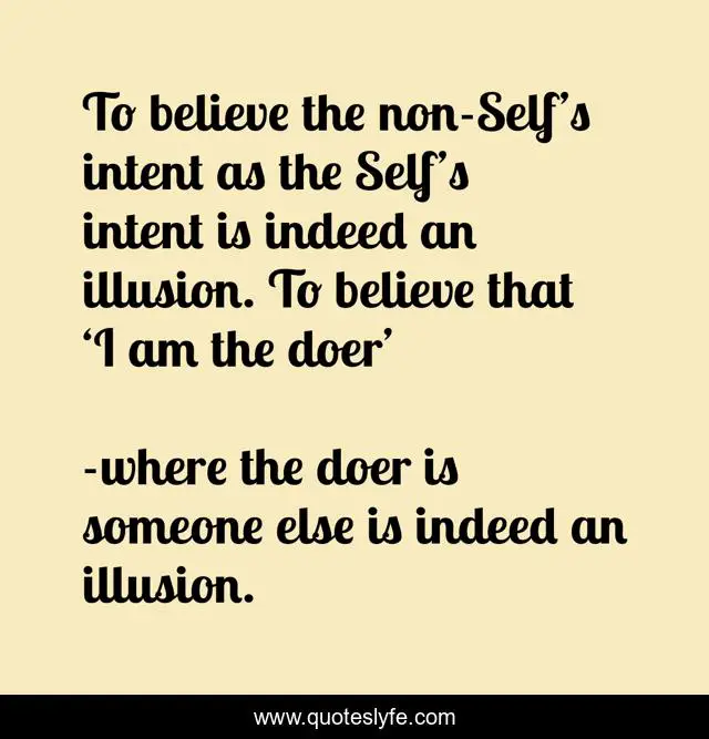 This page presents the quote "To believe the non-Self’s intent as the Self’s intent is indeed an illusion. To believe that ‘I am the doer’". Author of this quote is where the doer is someone else is indeed an illusion.. .