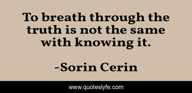 This page presents the quote "To breath through the truth is not the same with knowing it.". Author of this quote is Sorin Cerin. .