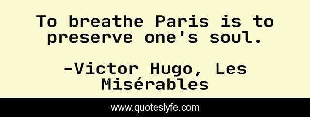 "Victor Hugo, Les Misérables Quotes." Quoteslyfe.com, 2025. Mon. 08 Dec. 2025. <https://www.quoteslyfe.com/quote/To-breathe-Paris-is-to-preserve-one-280779>.