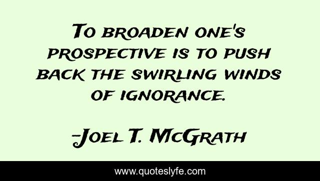 This page presents the quote "To broaden one's prospective is to push back the swirling winds of ignorance.". Author of this quote is Joel T. McGrath. This quote is about contemplation, insightful,.