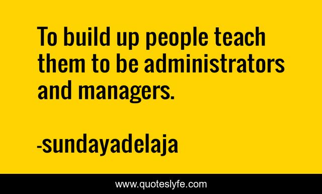 This page presents the quote "To build up people teach them to be administrators and managers.". Author of this quote is sundayadelaja. .