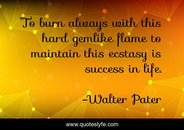 This page presents the quote "To burn always with this hard gemlike flame to maintain this ecstasy is success in life.". Author of this quote is Walter Pater. .