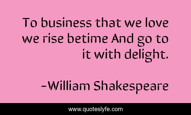 This page presents the quote "To business that we love we rise betime And go to it with delight.". Author of this quote is William Shakespeare. .