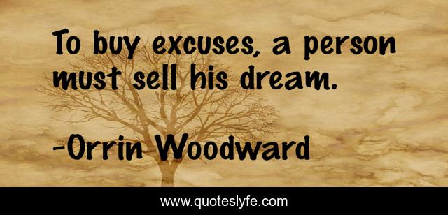 This page presents the quote "To buy excuses, a person must sell his dream.". Author of this quote is Orrin Woodward. This quote is about excuses, dreams, success, failure,.