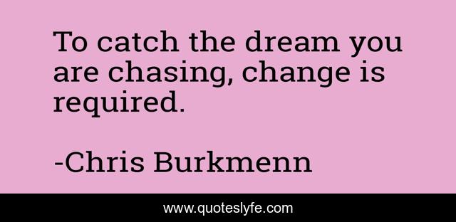 This page presents the quote "To catch the dream you are chasing, change is required.". Author of this quote is Chris Burkmenn. This quote is about faith, god, work, jesus, live, dreams, believe, achieve, goals,.