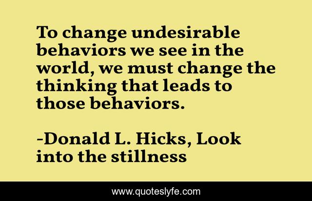 "Donald L. Hicks, Look into the stillness Quotes." Quoteslyfe.com, 2025. Sat. 06 Dec. 2025. <https://www.quoteslyfe.com/quote/To-change-undesirable-behaviors-we-see-in-200451>.