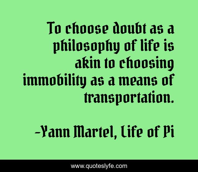 "Yann Martel, Life of Pi Quotes." Quoteslyfe.com, 2025. Sat. 06 Dec. 2025. <https://www.quoteslyfe.com/quote/To-choose-doubt-as-a-philosophy-of-1908>.