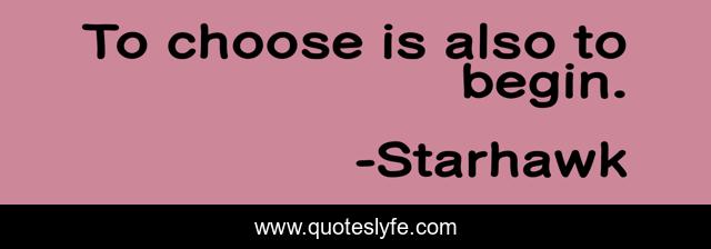 This page presents the quote "To choose is also to begin.". Author of this quote is Starhawk. This quote is about going, getting,.