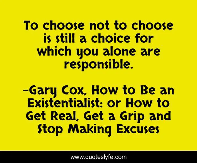 "Gary Cox, How to Be an Existentialist: or How to Get Real, Get a Grip and Stop Making Excuses Quotes." Quoteslyfe.com, 2025. Fri. 05 Dec. 2025. <https://www.quoteslyfe.com/quote/To-choose-not-to-choose-is-still-184535>.