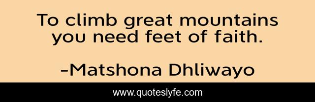 "Matshona Dhliwayo Quotes." Quoteslyfe.com, 2025. Tue. 09 Dec. 2025. <https://www.quoteslyfe.com/quote/To-climb-great-mountains-you-need-feet-109066>.