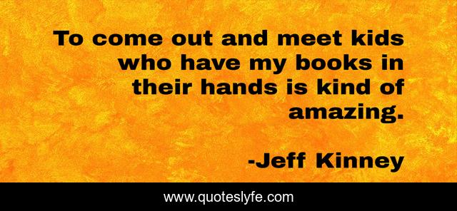 This page presents the quote "To come out and meet kids who have my books in their hands is kind of amazing.". Author of this quote is Jeff Kinney. This quote is about kind, kids, hands,.
