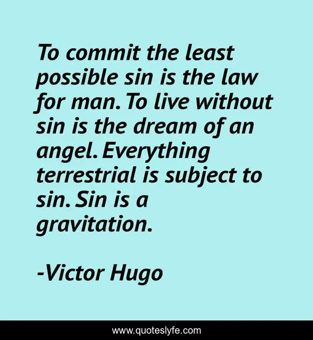 This page presents the quote "To commit the least possible sin is the law for man. To live without sin is the dream of an angel. Everything terrestrial is subject to sin. Sin is a gravitation.". Author of this quote is Victor Hugo. This quote is about les-miserables, angels, sin, victor-hugo,.