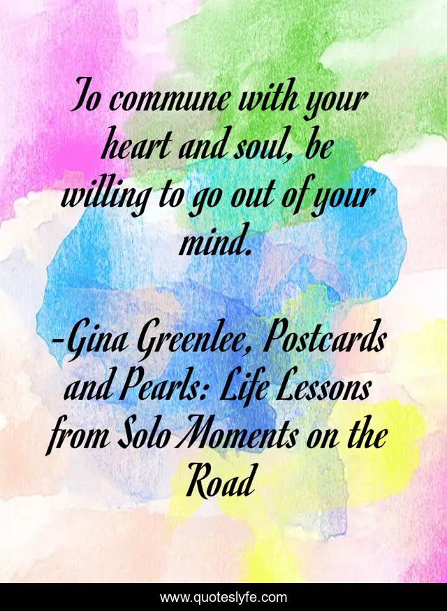"Gina Greenlee, Postcards and Pearls: Life Lessons from Solo Moments on the Road Quotes." Quoteslyfe.com, 2025. Sun. 07 Dec. 2025. <https://www.quoteslyfe.com/quote/To-commune-with-your-heart-and-soul-130443>.