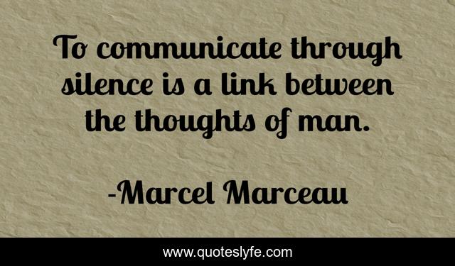 This page presents the quote "To communicate through silence is a link between the thoughts of man.". Author of this quote is Marcel Marceau. This quote is about silence, thoughts, man,.