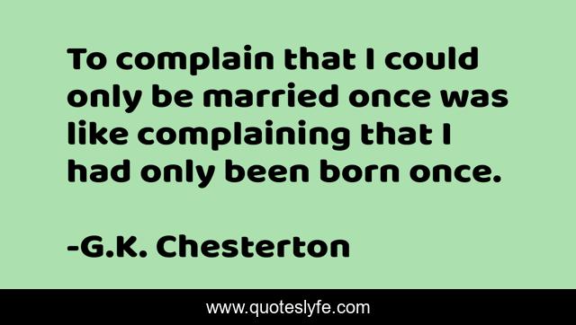 This page presents the quote "To complain that I could only be married once was like complaining that I had only been born once.". Author of this quote is G.K. Chesterton. .