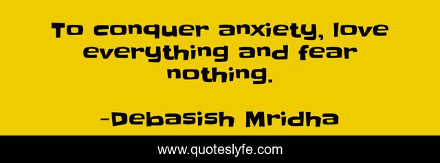 "Debasish Mridha Quotes." Quoteslyfe.com, 2025. Mon. 08 Dec. 2025. <https://www.quoteslyfe.com/quote/To-conquer-anxiety-love-everything-and-fear-74324>.