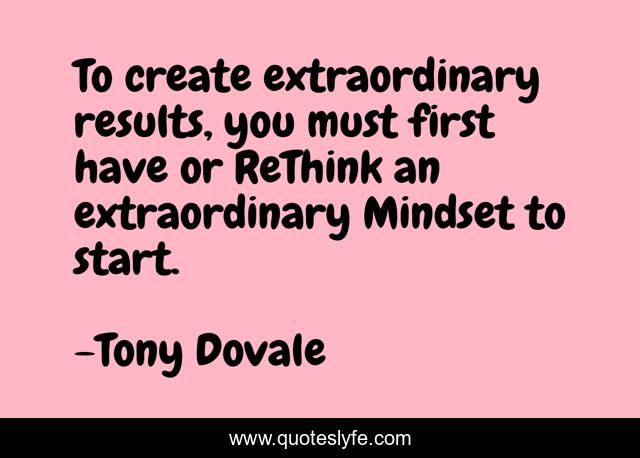 This page presents the quote "To create extraordinary results, you must first have or ReThink an extraordinary Mindset to start.". Author of this quote is Tony Dovale. This quote is about success, entrepreneurs, tony-dovale, attitudes, psycap, resilience, happiness, mindset,.