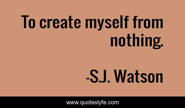 This page presents the quote "To create myself from nothing.". Author of this quote is S.J. Watson. .