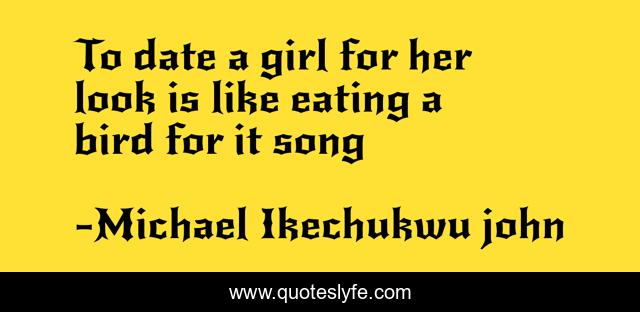This page presents the quote "To date a girl for her look is like eating a bird for it song". Author of this quote is Michael Ikechukwu john. This quote is about love, affection,.