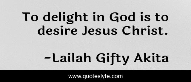 This page presents the quote "To delight in God is to desire Jesus Christ.". Author of this quote is Lailah Gifty Akita. This quote is about desire, faith, jesus-christ, christian, inspiring-thoughts, god, theology, delight, religion,.