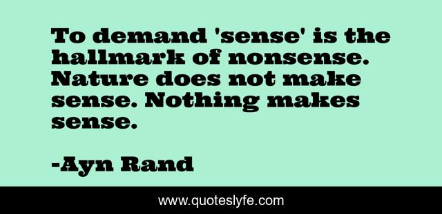 This page presents the quote "To demand 'sense' is the hallmark of nonsense. Nature does not make sense. Nothing makes sense.". Author of this quote is Ayn Rand. .