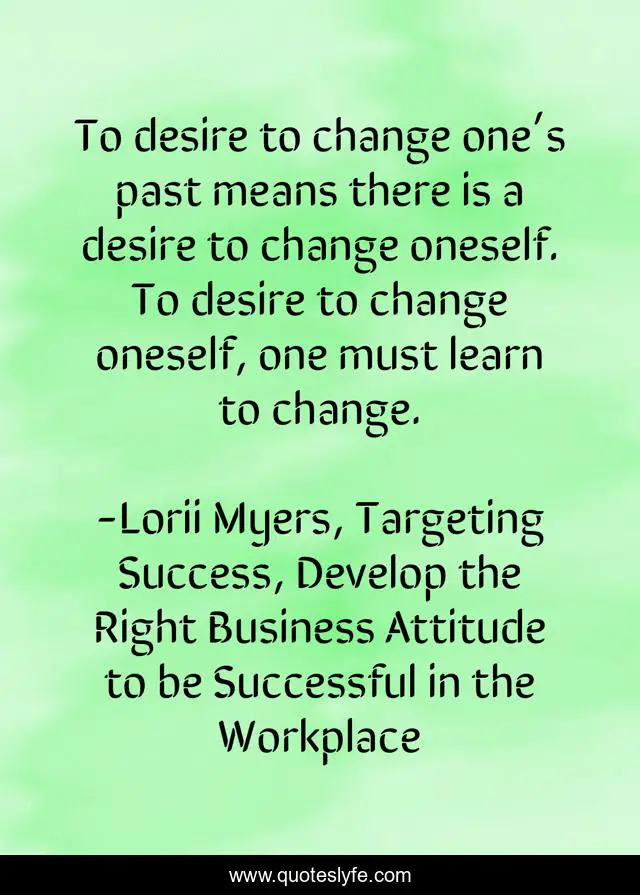 "Lorii Myers, Targeting Success, Develop the Right Business Attitude to be Successful in the Workplace Quotes." Quoteslyfe.com, 2025. Mon. 08 Dec. 2025. <https://www.quoteslyfe.com/quote/To-desire-to-change-one-s-past-59653>.