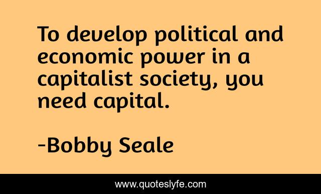 This page presents the quote "To develop political and economic power in a capitalist society, you need capital.". Author of this quote is Bobby Seale. This quote is about political, power,.