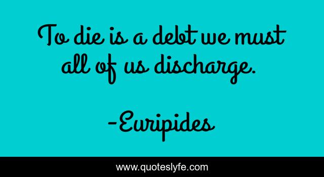 This page presents the quote "To die is a debt we must all of us discharge.". Author of this quote is Euripides. This quote is about death, dying,.