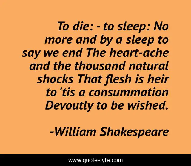 "William Shakespeare Quotes." Quoteslyfe.com, 2025. Sat. 06 Dec. 2025. <https://www.quoteslyfe.com/quote/To-die-to-sleep-No-more-and-262976>.