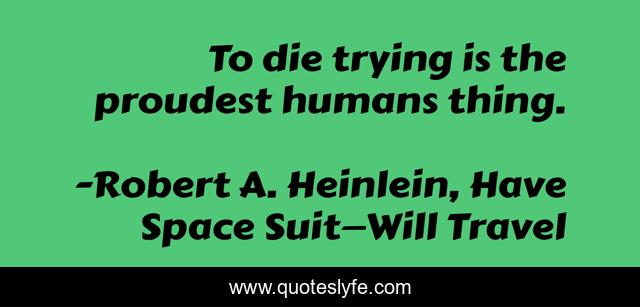 This page presents the quote "To die trying is the proudest humans thing.". Author of this quote is Robert A. Heinlein, Have Space Suit—Will Travel. This quote is about self-sacrifice, mortality, ministry,.