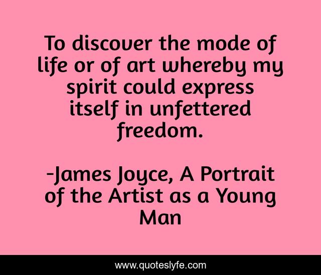 This page presents the quote "To discover the mode of life or of art whereby my spirit could express itself in unfettered freedom.". Author of this quote is James Joyce, A Portrait of the Artist as a Young Man. This quote is about life, art, unfettered,.