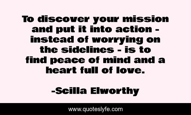 "Scilla Elworthy Quotes." Quoteslyfe.com, 2025. Sat. 06 Dec. 2025. <https://www.quoteslyfe.com/quote/To-discover-your-mission-and-put-it-323608>.