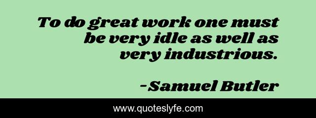This page presents the quote "To do great work one must be very idle as well as very industrious.". Author of this quote is Samuel Butler. This quote is about work, idleness, industriousness,.