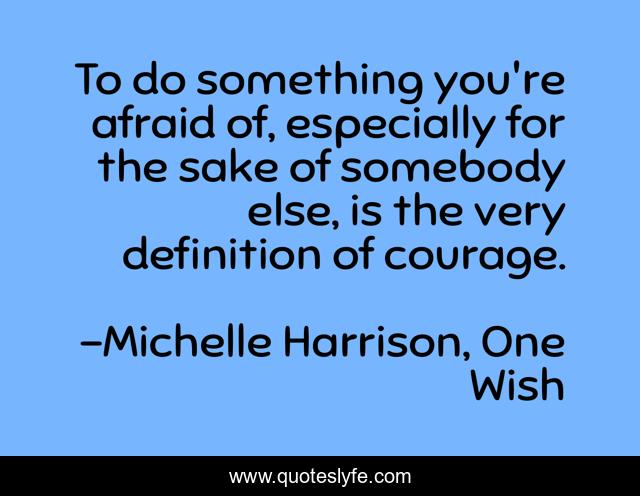 This page presents the quote "To do something you're afraid of, especially for the sake of somebody else, is the very definition of courage.". Author of this quote is Michelle Harrison, One Wish. .