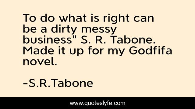 This page presents the quote "To do what is right can be a dirty messy business" S. R. Tabone. Made it up for my Godfifa novel.". Author of this quote is S.R.Tabone. This quote is about humorous, psychological,.