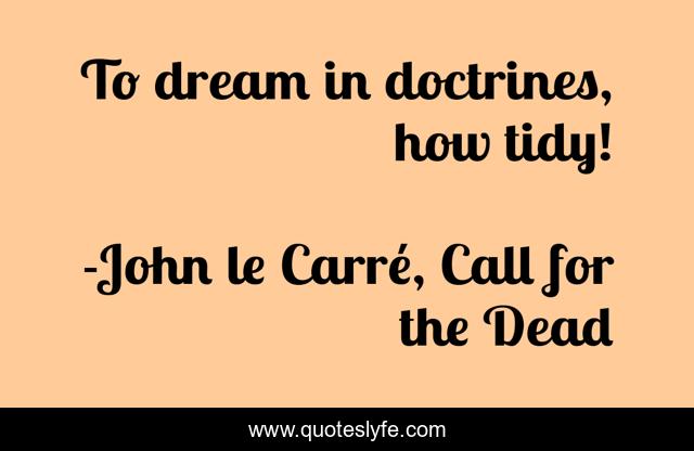 This page presents the quote "To dream in doctrines, how tidy!". Author of this quote is John le Carré, Call for the Dead. This quote is about rules, legalism, formality, inspiration,.