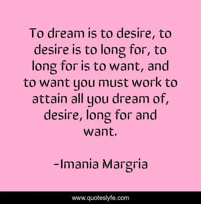 "Imania Margria Quotes." Quoteslyfe.com, 2025. Sat. 06 Dec. 2025. <https://www.quoteslyfe.com/quote/To-dream-is-to-desire-to-desire-47907>.