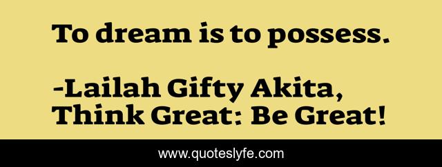 "Lailah Gifty Akita, Think Great: Be Great! Quotes." Quoteslyfe.com, 2025. Tue. 09 Dec. 2025. <https://www.quoteslyfe.com/quote/To-dream-is-to-possess-131108>.