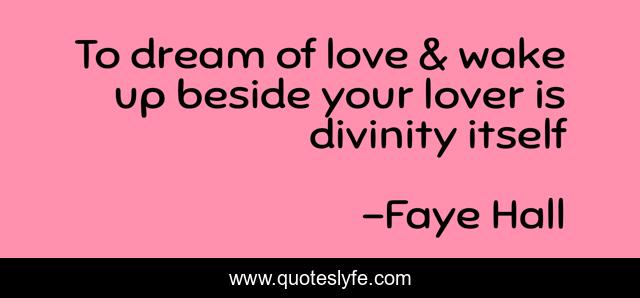 This page presents the quote "To dream of love & wake up beside your lover is divinity itself". Author of this quote is Faye Hall. This quote is about divinity, lovers, love, affection,.