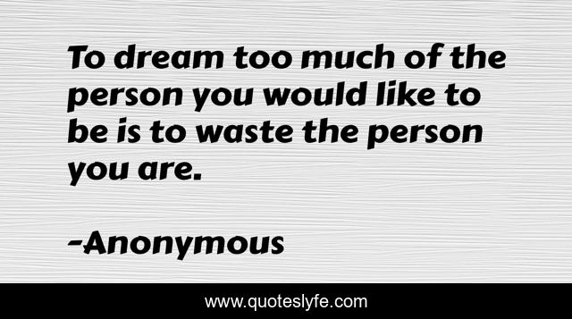 This page presents the quote "To dream too much of the person you would like to be is to waste the person you are.". Author of this quote is Anonymous. This quote is about realistic, expectations,.