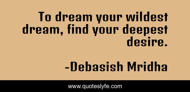 This page presents the quote "To dream your wildest dream, find your deepest desire.". Author of this quote is Debasish Mridha. This quote is about wildest-dream, philosophy, debasish-mridha, quotes, deepest-desire, inspirational, enthusiasm, dream, debasish-mridha-m-d,.