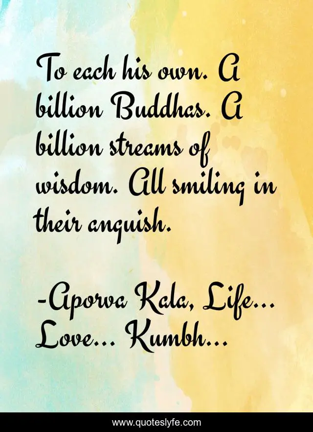 "Aporva Kala, Life... Love... Kumbh... Quotes." Quoteslyfe.com, 2025. Mon. 08 Dec. 2025. <https://www.quoteslyfe.com/quote/To-each-his-own-A-billion-Buddhas-255978>.