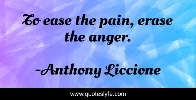 "Anthony Liccione Quotes." Quoteslyfe.com, 2025. Sat. 06 Dec. 2025. <https://www.quoteslyfe.com/quote/To-ease-the-pain-erase-the-anger-161664>.