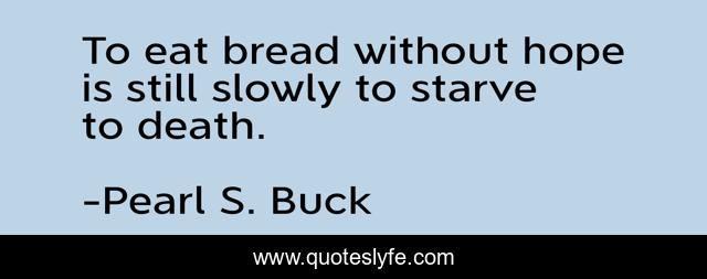This page presents the quote "To eat bread without hope is still slowly to starve to death.". Author of this quote is Pearl S. Buck. .