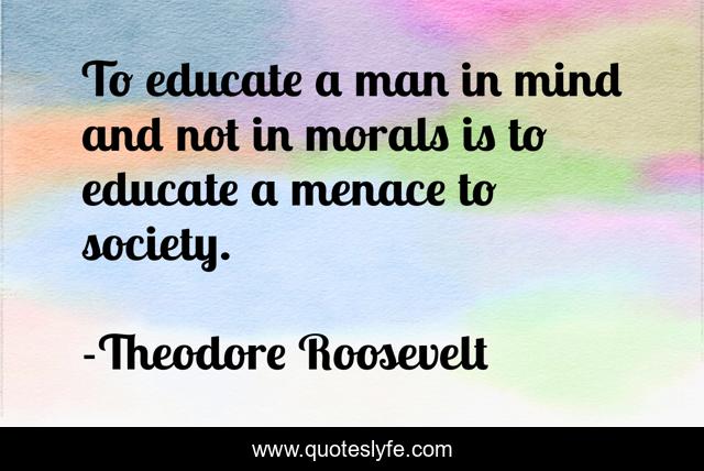 This page presents the quote "To educate a man in mind and not in morals is to educate a menace to society.". Author of this quote is Theodore Roosevelt. This quote is about society, mind, man,.